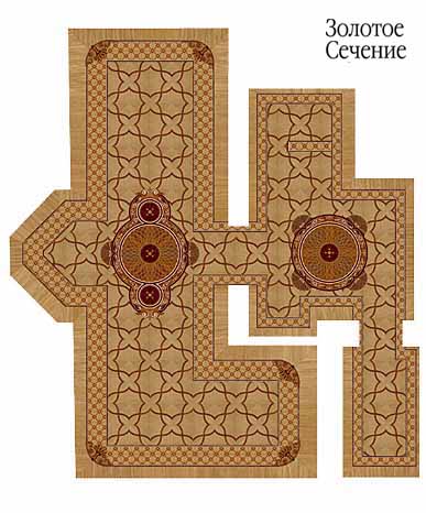 взаимосвязанных через узкие коридоры. Основу паркетного фона составляет модульный паркет